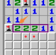 橙色箭头所指的3,周围已有2个雷通过其他方式判出,因此真实数字为1,可以使用1221定式。